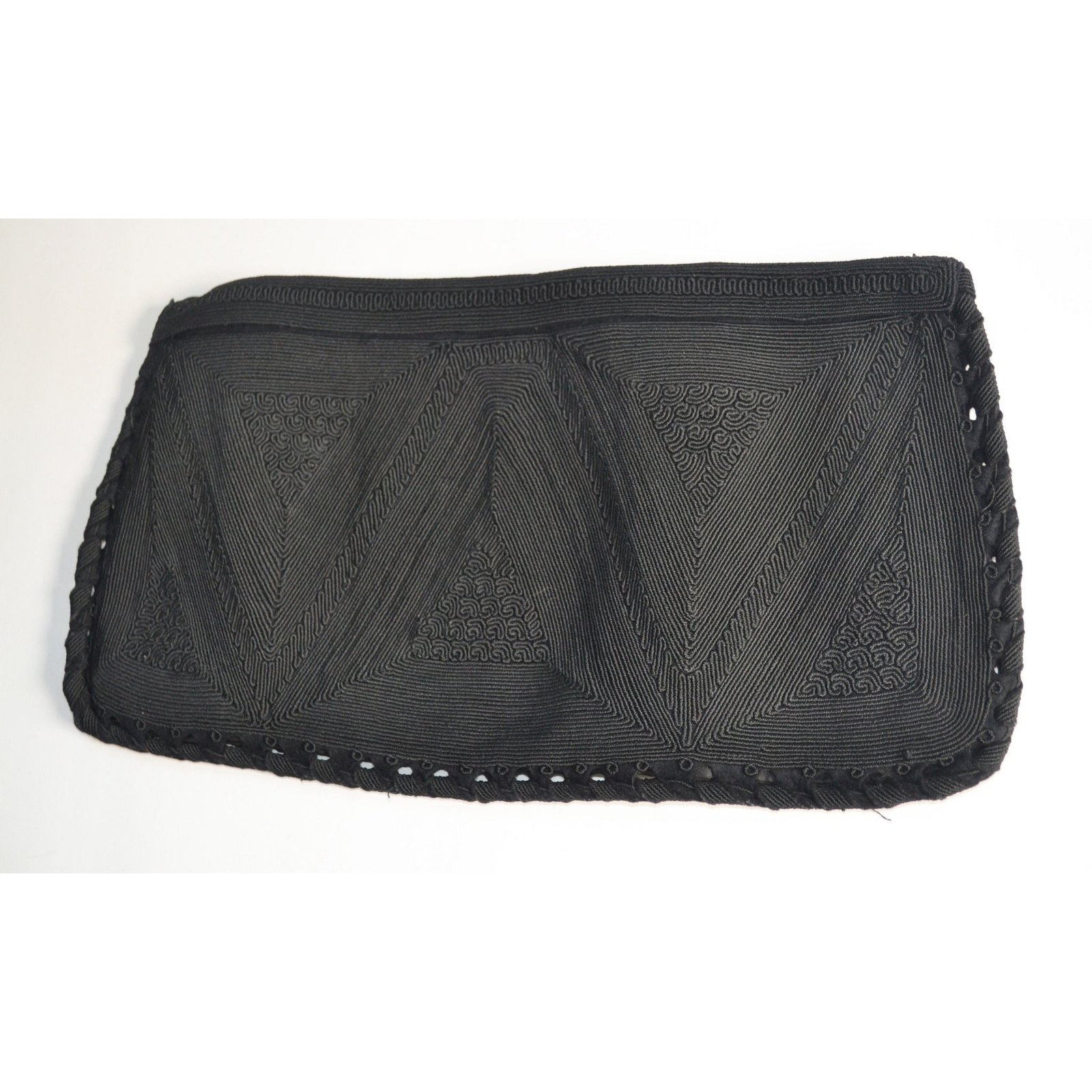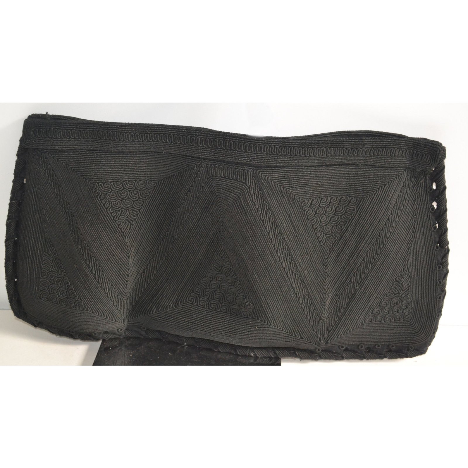 This large vintage Genuine Corde clutch purse is fabric lined with one zip pocket.