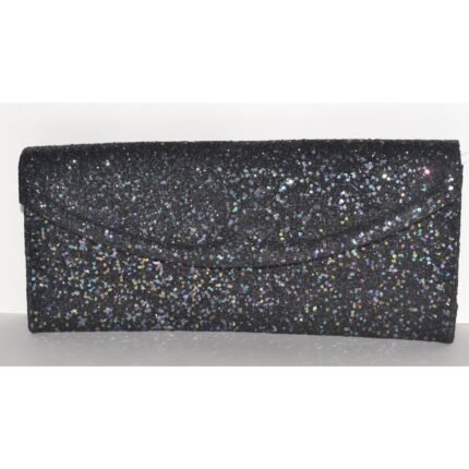 This cute black & white beaded evening purse has fabric interior with one pocket. Solid black on reverse side. Â